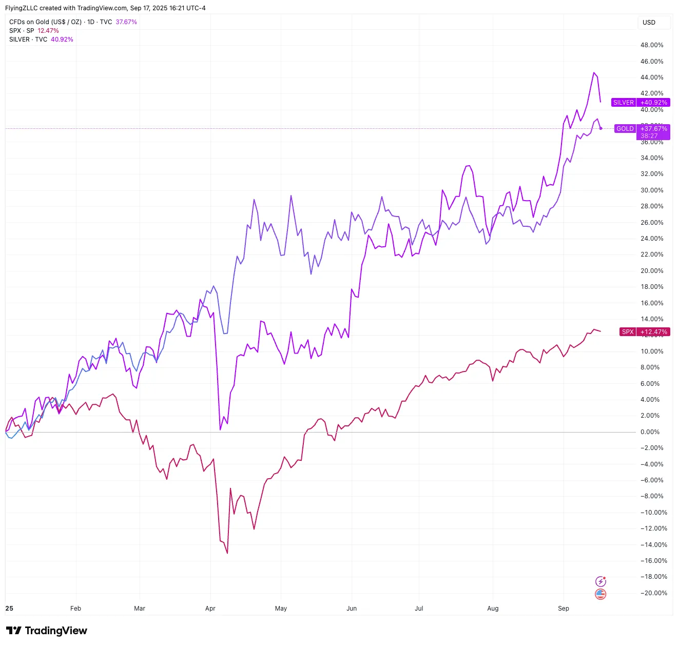 While Powell’s kabuki played out, gold and silver quietly tripled the S&P 500’s YTD returns.