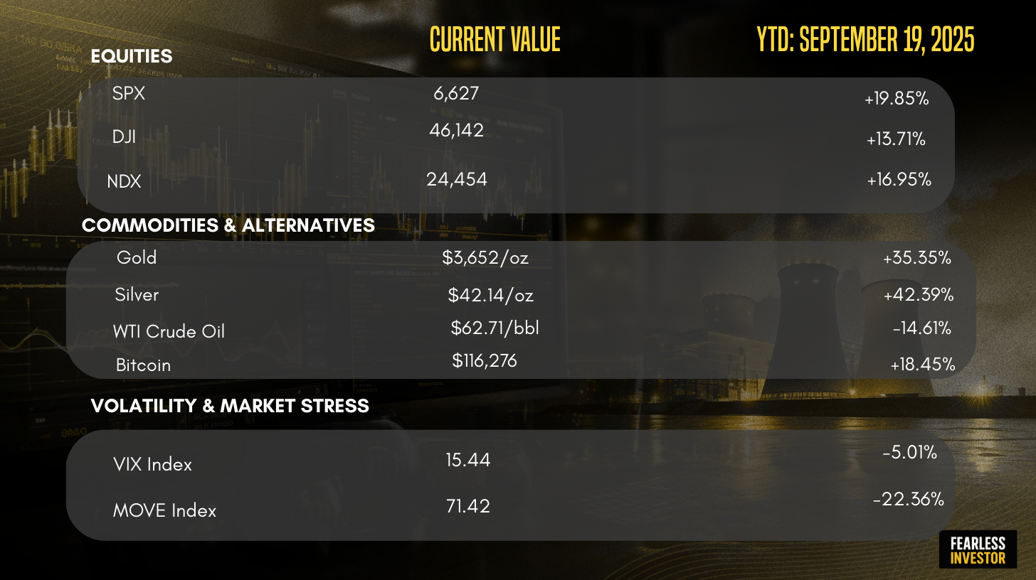 Another 25bps Fed charade, gold + Bitcoin crush the S&P, AI guts Gen Z’s job market, and foreign money returns with a hedge.
